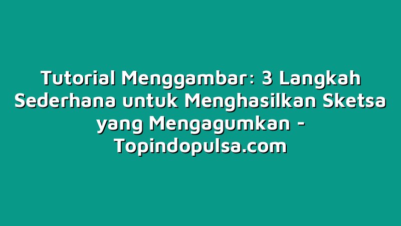 Topindopulsa.com, Singkawang – Hai Sobat Topindoku! Apa kabar? Kali ini kita akan membahas tutorial menggambar dengan 3 langkah sederhana untuk menghasilkan sketsa yang mengagumkan. Siapa yang tidak demen dengan gambar yang indah dan menarik, bukan? Yuk, simak artikel ini sampai selesai untuk mengetahui tips dan triknya. Selamat membaca!