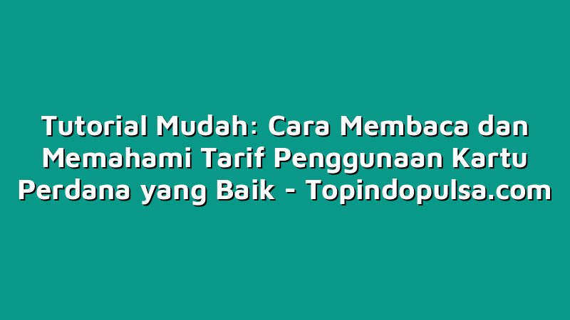 Tutorial Mudah: Cara Membaca dan Memahami Tarif Penggunaan Kartu Perdana yang Baik