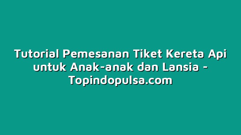 Topindopulsa.com, Singkawang – Halo sobat Topindoku! Bagaimana kabar kalian hari ini? Semoga selalu sehat dan bahagia ya. Kali ini, Topindoku ingin berbagi tutorial pemesanan tiket kereta api khusus untuk anak-anak dan lansia. Tentunya, ini akan sangat membantu para orang tua atau saudara yang ingin mengantar mereka berpergian menggunakan kereta api. Yuk, simak sampai akhir ya!